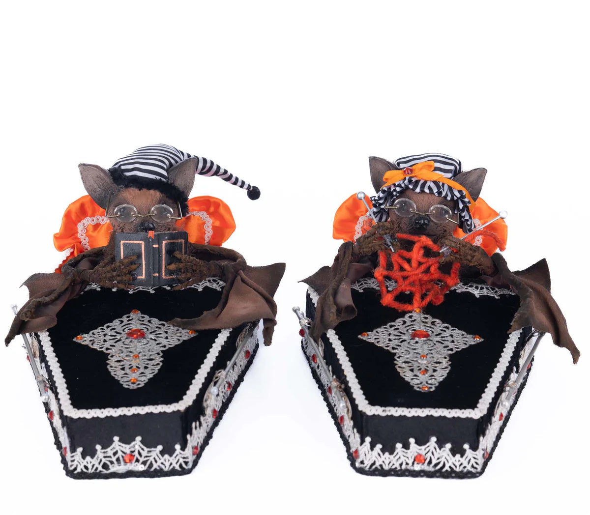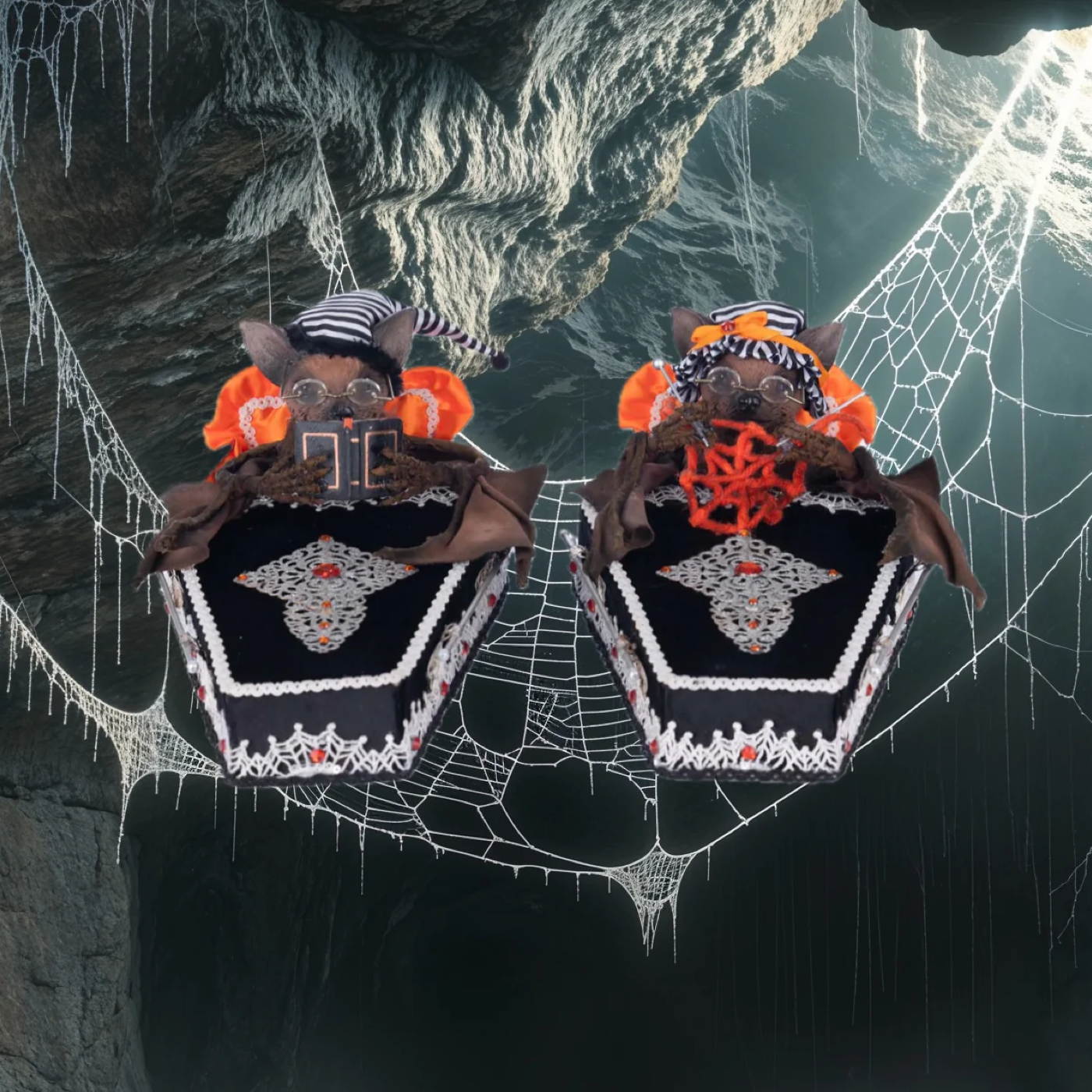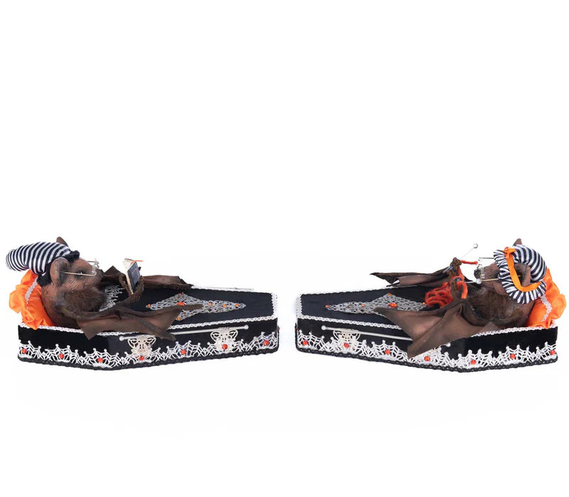 Bedtime with the Batsons is a fang-tastically charming duo of little bats nestled snugly in their embellished coffins. With tiny bedtime details and glittering touches, these nocturnal cuties turn spooky slumber into a delightfully batty bedtime story!