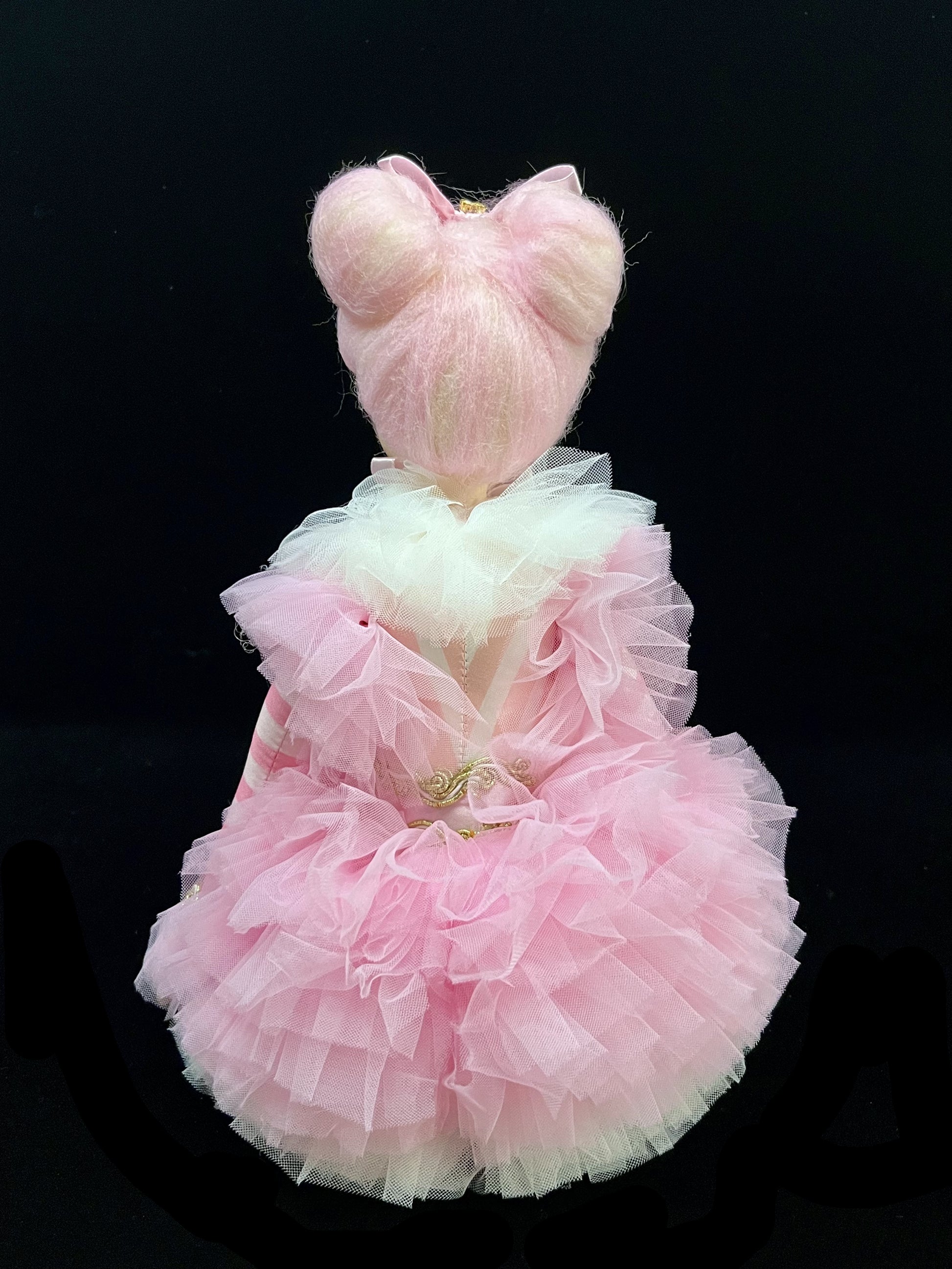 This handcrafted European doll is a masterpiece of artistry, blending exquisite craftsmanship with sugary sweet enchantment. A must-have accent for your holiday tree or chic décor!