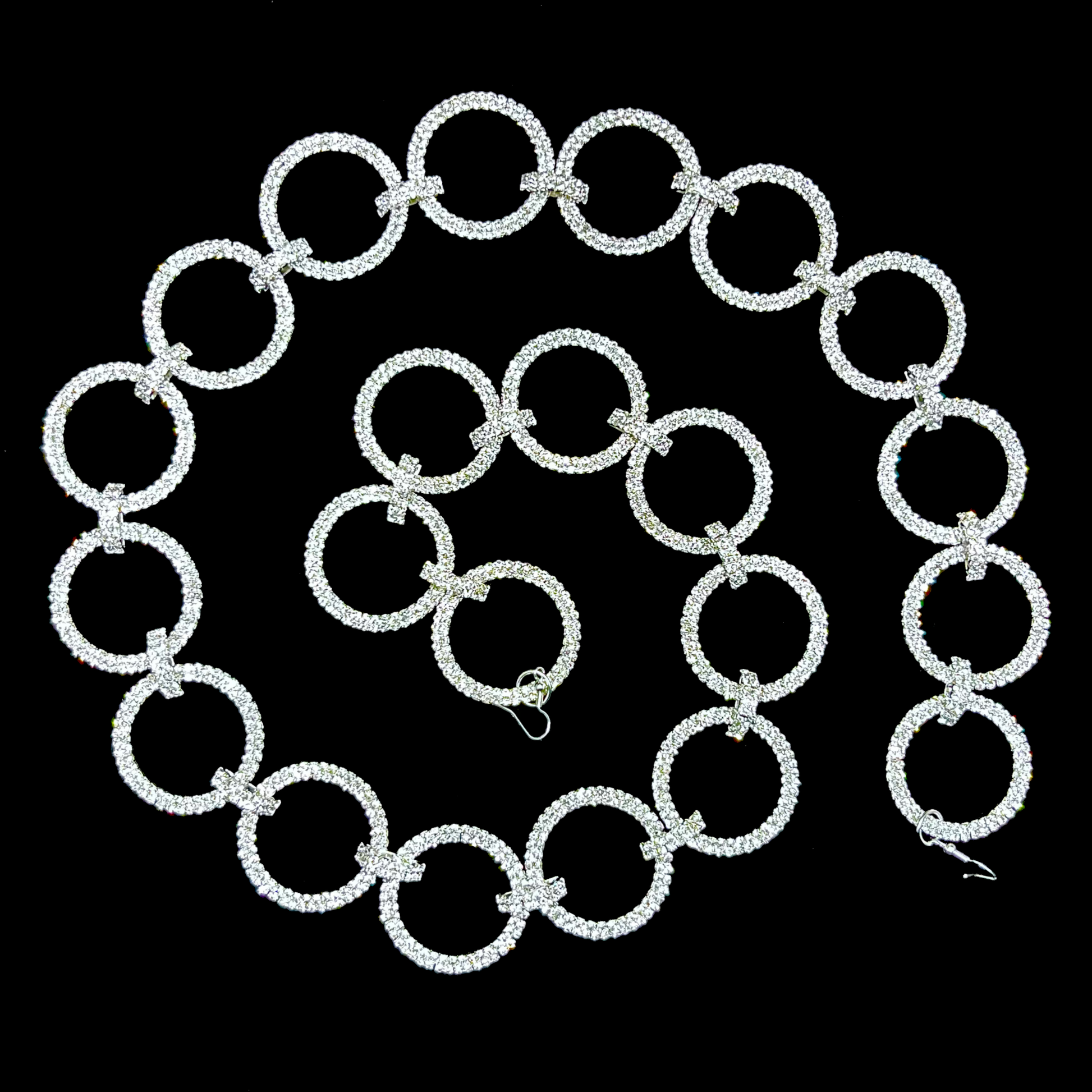 Showcasing a harmonious blend of alternating open small and large rings adorned with dazzling crystals on a sleek silver base. This elegant piece elevates your style and serves as a versatile decoration, perfect for adorning a tree, wreath, or any festive display.
