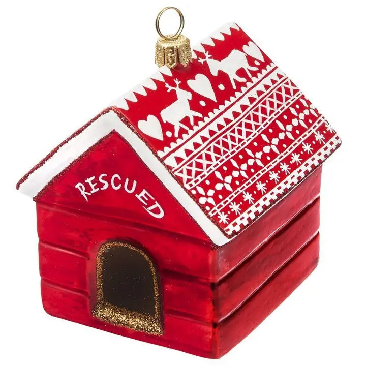 This delightful glass Diva-Rescue-Dog ornament showcases intricate details, including its festive red design with a Nordic pattern and the heartfelt "RESCUED" inscription—perfect for honoring a rescued dog's unique story. Ideal for dog lovers and collectors, this stunning ornament serves as a tender tribute, perfect for adding to your collection or gifting to someone who cherishes the spirit of rescue!
