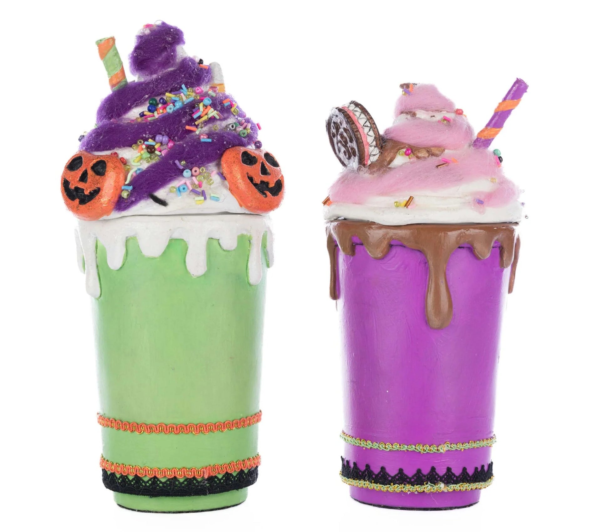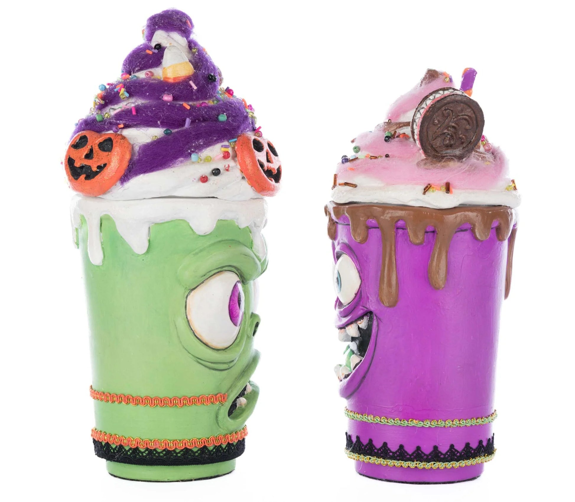 Brew up some spooky fun with the Franken Frap, a monster-inspired coffee drink with big eye, whipped cream, sprinkles and a purple topping. Perfectly eerie and delightfully sweet! Also, meet the Mocha Monster, a frightfully fabulous cup of Halloween cheer! With bold colors, googly eyes, and pink whipped topping, and topped with a cookie making it the perfect spooky sip for Halloween.