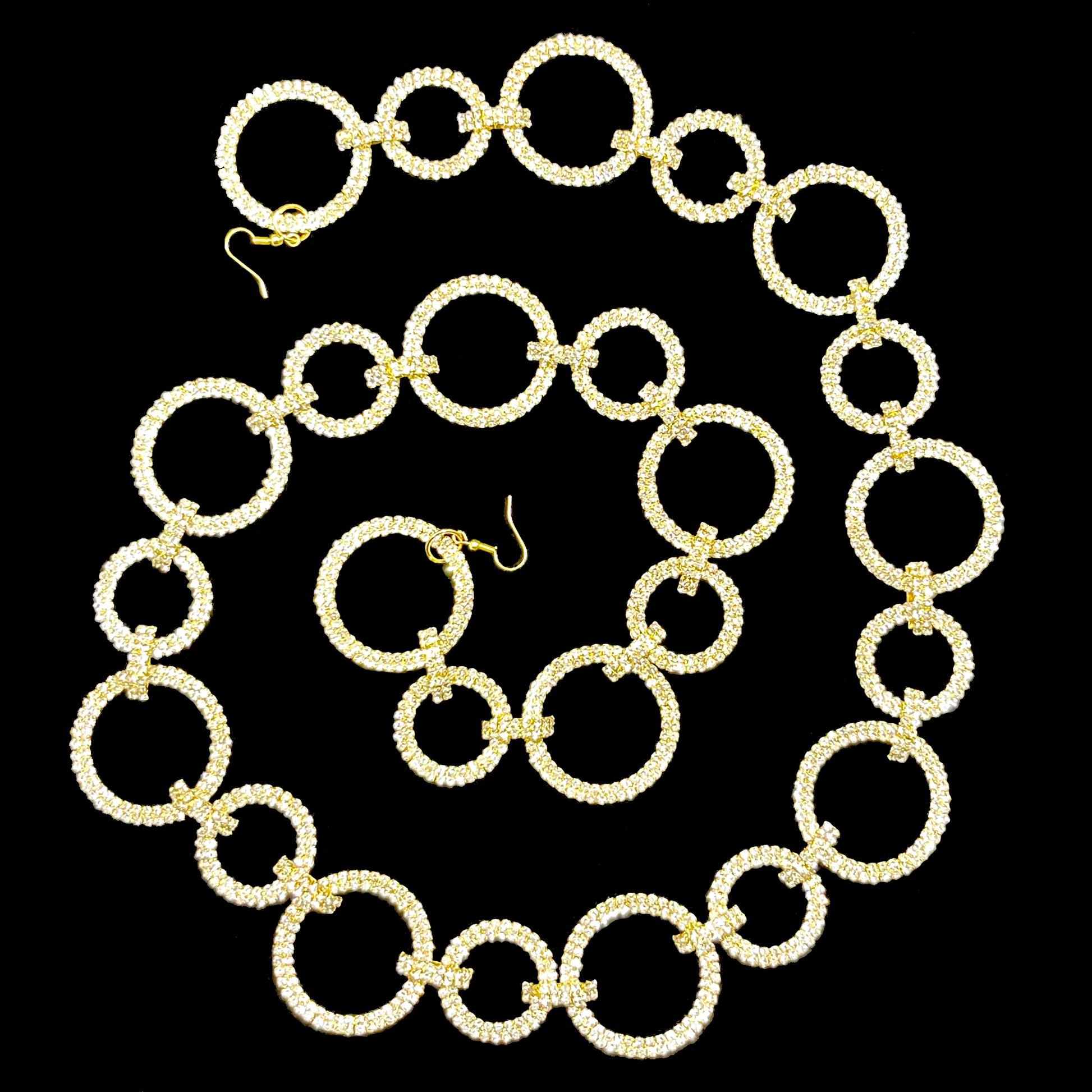 Showcasing a harmonious blend of alternating opened small and large rings crafted with dazzling crystal in a radiant gold finish. This elegant piece elevates your style and serves as a versatile decoration, perfect for adorning a tree, wreath, or any festive display.
