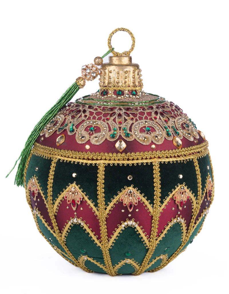 Elevate your gifting with this grand decorative box. Featuring a removable lid, this richly embellished piece in deep green and burgundy with gold accents is perfect for hiding a special gift, wrapped candy, or treasured keepsake, adding a touch of luxury to any holiday display.