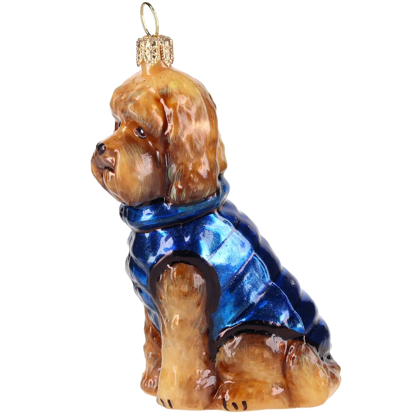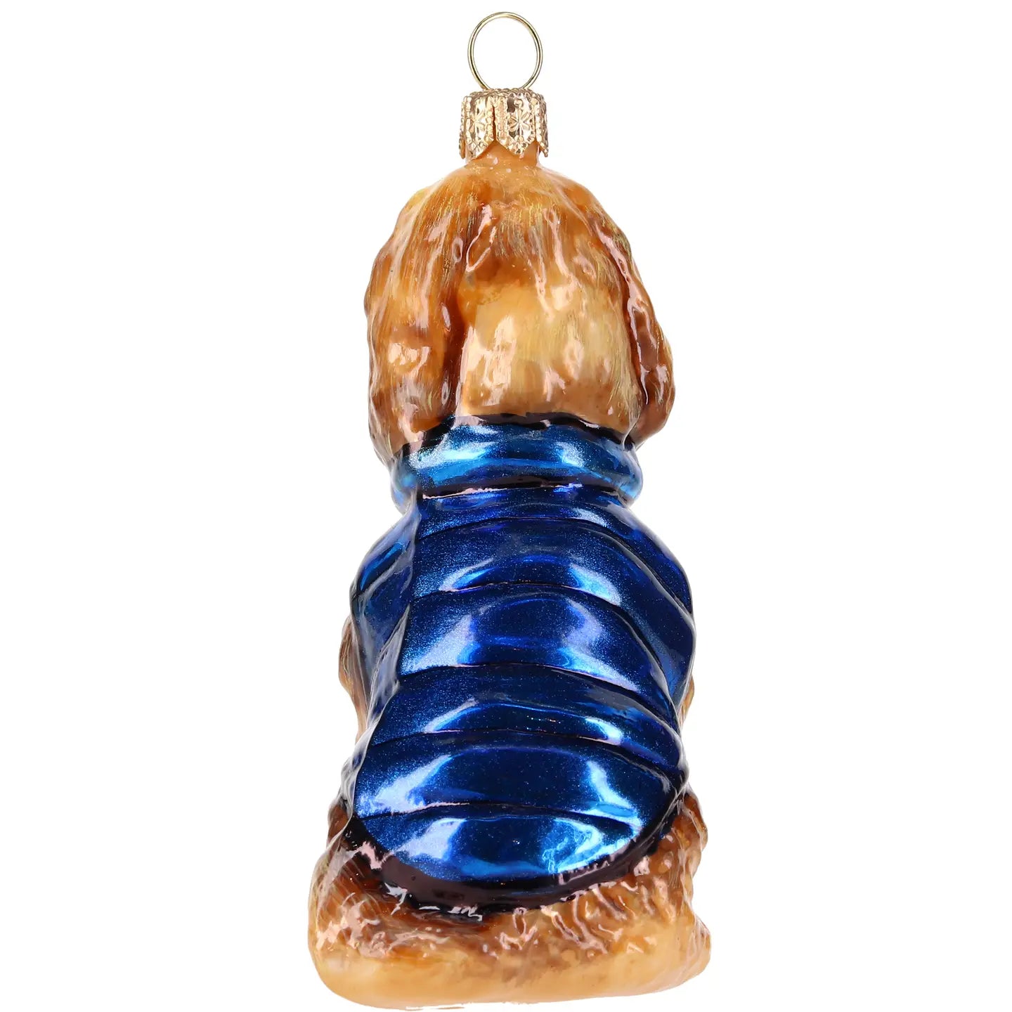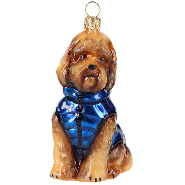 Add a cheerful touch to your holiday tree with this delightful glass Labradoodle ornament! Dressed in a stylish blue vest, this charming pup shines against a backdrop of twinkling lights, bringing a playful yet elegant vibe for dog lovers and festive decorators alike!